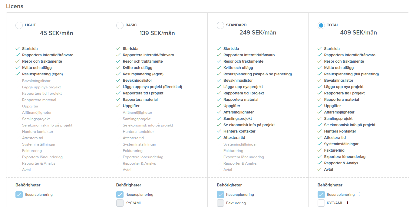 Det behöver även finnas en attestansvarig, antingen en användare med Totallicens eller Standardlicens, eller användaren själv.