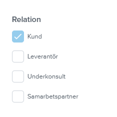 Relation är en klassificering av dina kontakter för att kunna filtrera personer och företag utefter vilken relation ni har med dem.