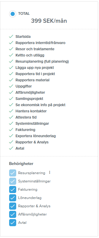 För att se Analysmodulen krävs det en Totallicens med behörighet Rapport & Analys. Om du har en totallicens, men saknar behörigheten Löneunderlag ser du inte Frånvaroanalysen, utan bara de andra tre analyserna.