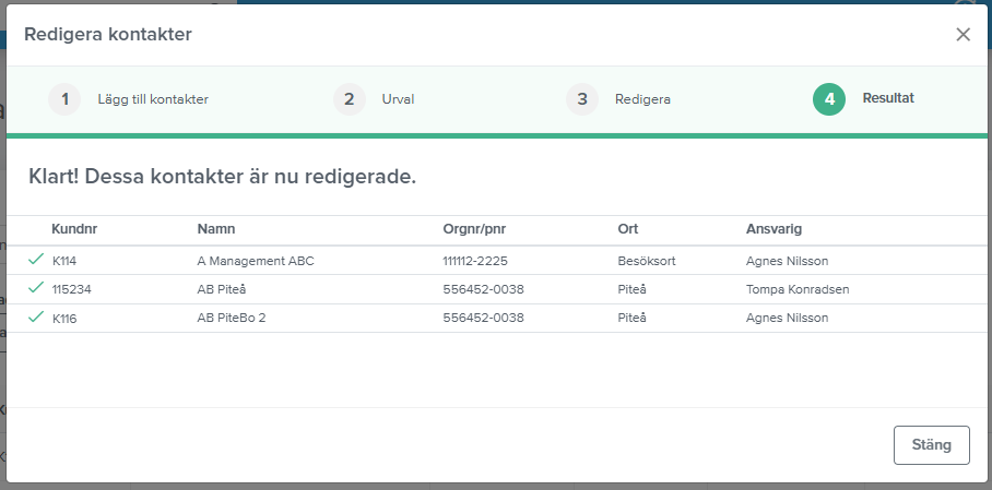 Du får en bekräftelse på vilka kontakter som är ändrade. Klart!
